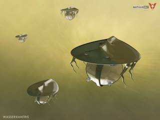 Die Wasserxantris sind flache, ausgedehnte Wesen, die ihre Nahrung per Filter mit Unmengen von flüssigem Wasserstoff aufnehmen, der zuerst in einer Urin-Blase, die eigentlich optisch den gröszten Teil dieser Wesen ausmacht, gesammelt wird. Diese Balse steht unter einem gewaltigen Innendruck, und bei Reisen ausserhalb der Atmospäre ist es nötig, ständig die Verdauungssäfte abzupumpen. Die Wasserxantris leben in einer ganz bestimmten Atmosphärenschicht von Plappa, die sogenannte Hängersphäre, in der der Druck stabil die Werte erreicht, die die Wasserxantris zum Auftrieb benötigen. Dort befinden sich auch ihre Städte.